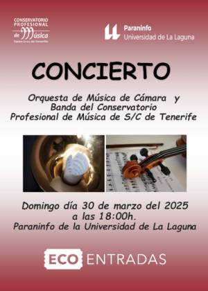 El Paraninfo de la ULL recibe el concierto del alumnado del Conservatorio Profesional de Música de Santa Cruz de Tenerife. El Conservatorio Profesional de Música de Santa Cruz de Tenerife, como parte de su proyecto educativo, fomenta en el alumnado con este tipo de actividades la participación en actividades motivadoras fuera del ámbito del centro. Con este concierto de la Orquesta de Música de Cámara y la Banda del CPM se quiere mostrar el nivel y trabajo realizado por el alumnado y el profesorado de dos de las agrupaciones representativas del centro.