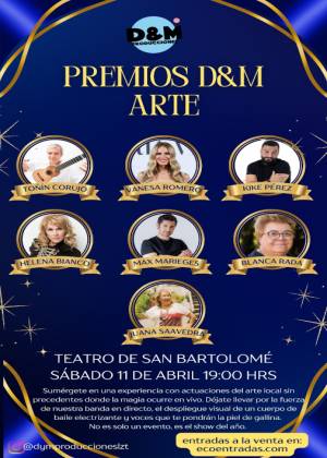 "Premios D&M Arte" es mucho más que una gala de galardones; es una celebración vibrante del talento y la cultura que transforma el Teatro de San Bartolomé en el epicentro del espectáculo. Producido por D&M Producciones, este evento nace con el objetivo de rendir tributo a la excelencia artística, reuniendo en una sola noche a grandes figuras del panorama nacional y local.