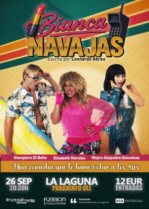 Si buscas un plan donde no pararás de reír esta es tu obra. La historia de Bianca Navajas es la de una mujer atrapada en el modo de vida de los años 80 que intenta salir adelante en la época actual con la profesión más antigua del mundo: la prostitución. Harta de su mala suerte, se aferra a un décimo de la lotería de Navidad que le cambiaría la vida por completo, al mismo tiempo que intenta escribir un libro para dejar el oficio más antiguo del mundo. Pero lo que no espera es que su proxeneta envía a Fabiana, una scort de alto standing para que compartan el piso donde habita y pueda hacer resurgir el negocio, donde la lucha generacional no se hará esperar. Entre divertidas escenas y momentos musicales que llevará al público a la década de los 80, Bianca y Fabiana irán recibiendo a los clientes, dejando de lado su «profesión» para imponer sus estilos de vida.